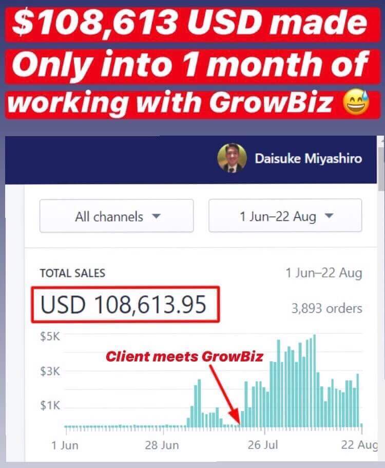 Daisuke, a Japanese raised in Australia, has been helping grow businesses for close to a decade. His obsession with numbers and high level experience in creating front to backend customer acquisition systems has enabled him to help hundreds of online store owners all across the world. He founded Growbiz with the goal of helping eCommerce business owners add millions in revenue with his proprietary method. His methods are sought after by businesses and marketing agencies across the globe