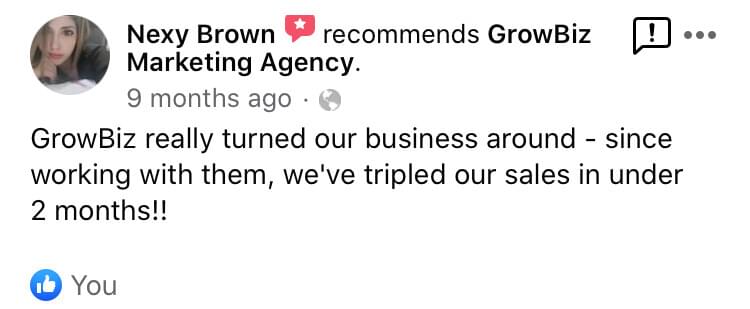 "Honestly it was the best decision we've made for the business to date. Within two months we grew that $25,000 mark to $95,000 per month, on only $17,000 of ad spend! If you're someone that's just on the fence, do not hesitate, just jump right in. I recommend GrowBiz to everybody"