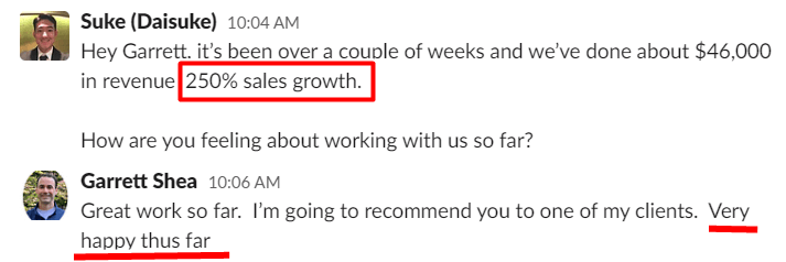 "We started off with less than $20,000 a month, and now we're upwards of $100,000 a month in sales revenue. So, once again, couldn't endorse them enough. They've been tremendous for us to work with."